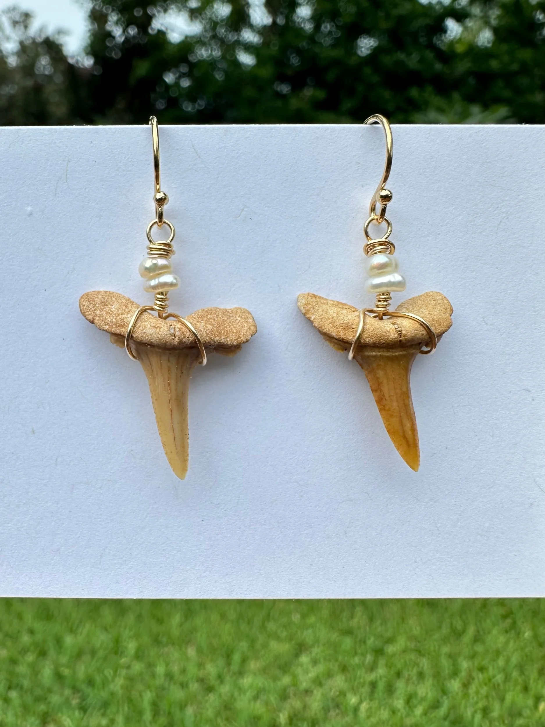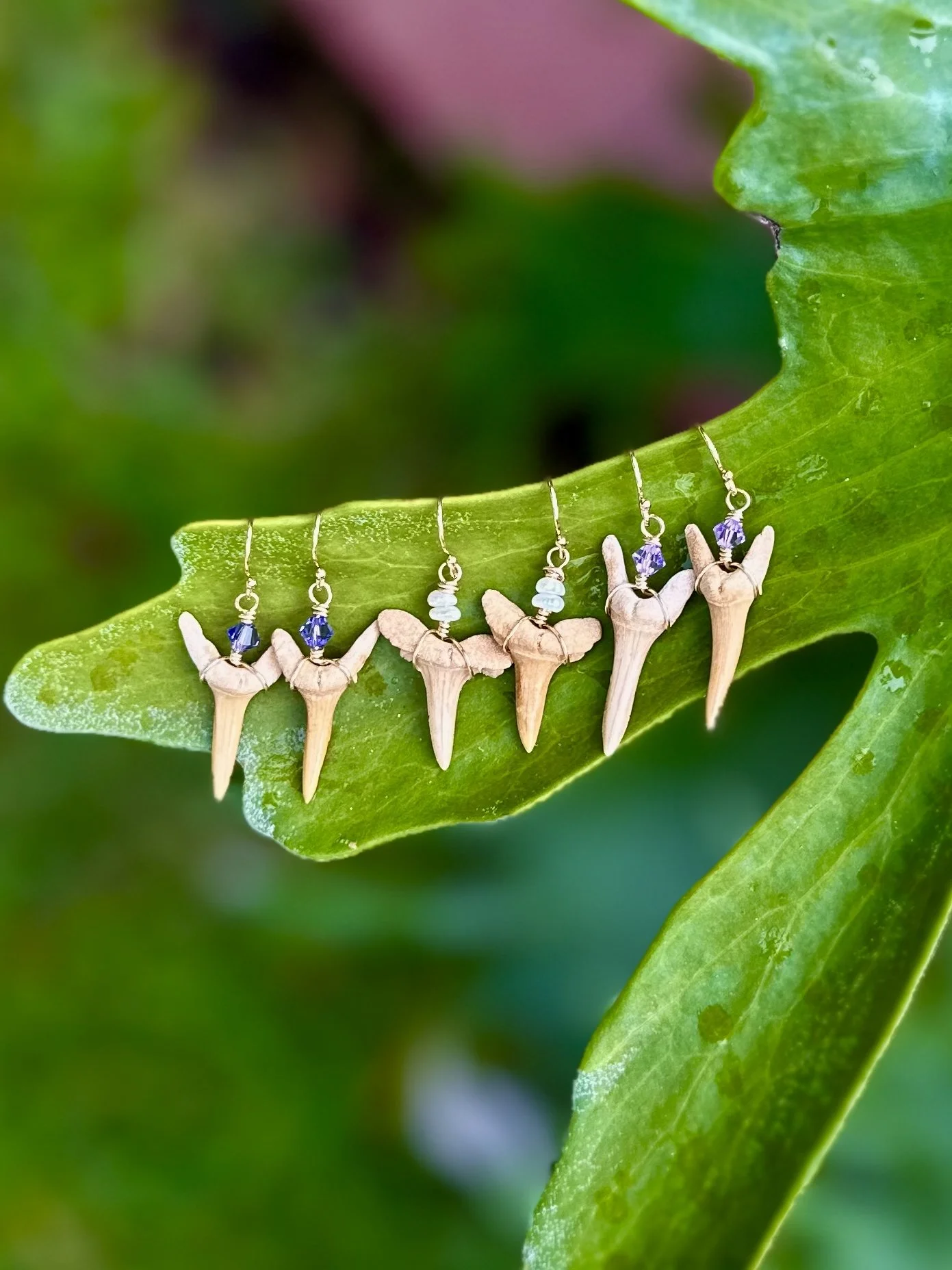 π¦ Mini fossilized shark teeth wire wrapped with 14k gold filled wire and hoops.